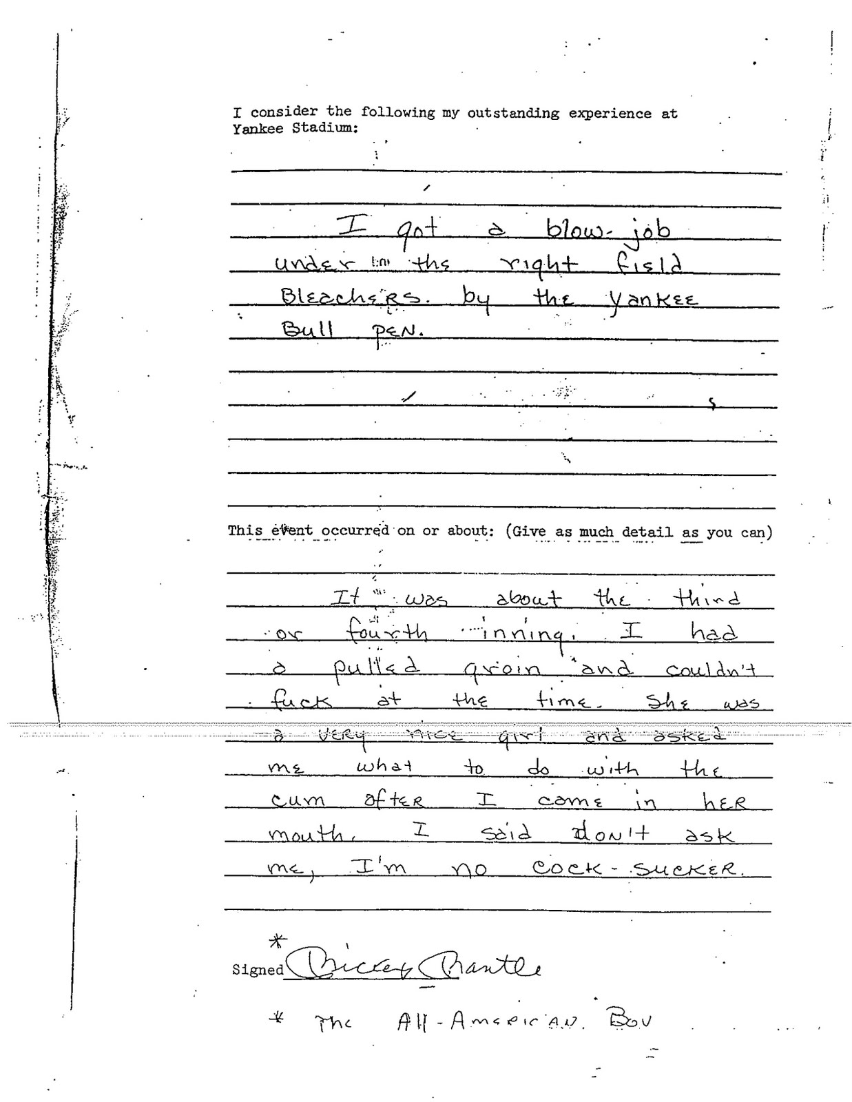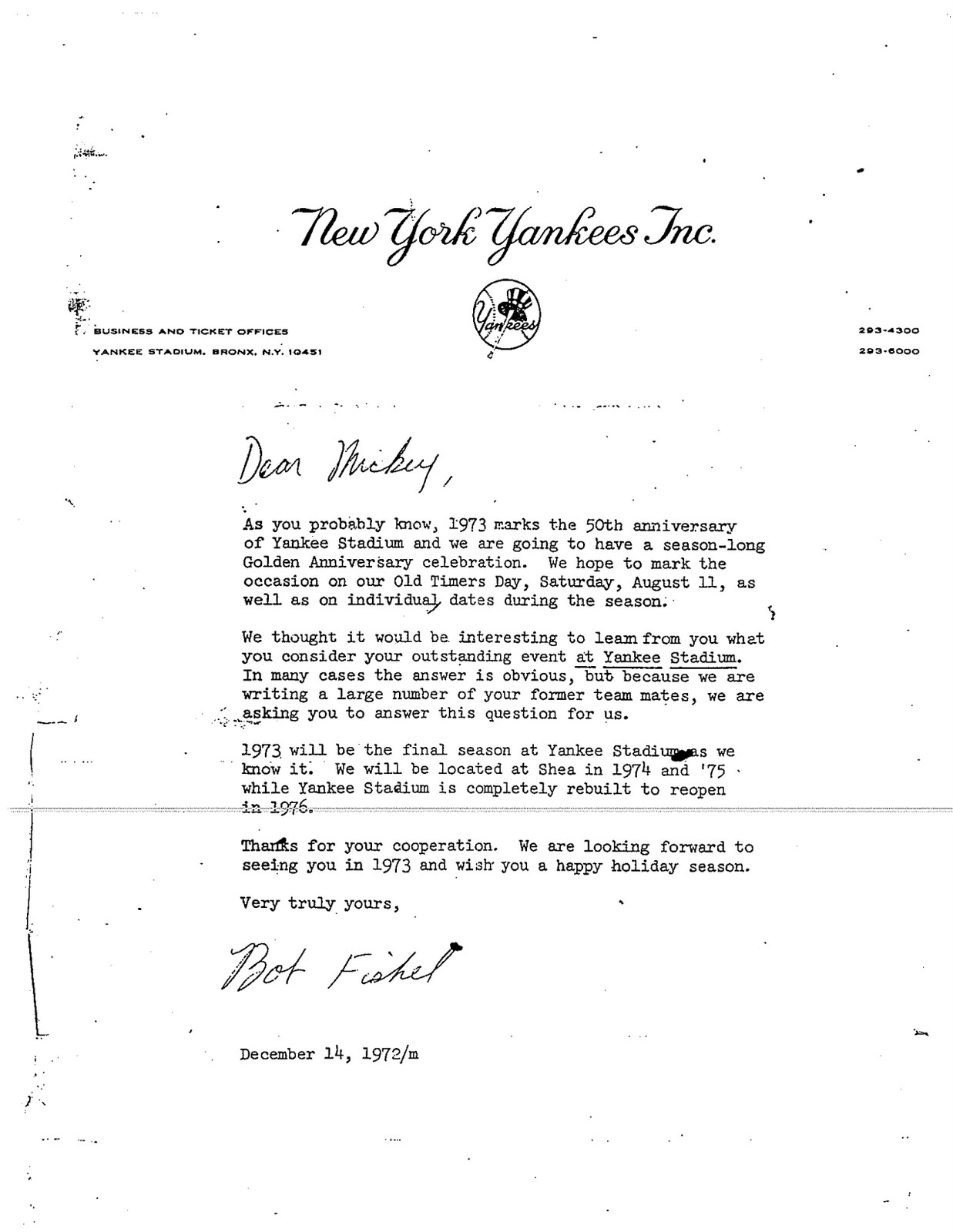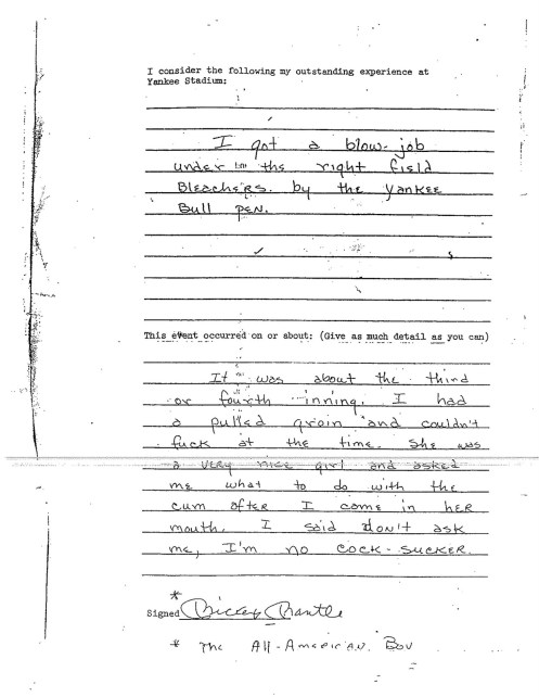 This has floated around the internet for a few years or so but thought I would share as it is too good to not share. From what I have researched, the letter was found in the Yankees archives while searching for memorabilia for a charity auction. From what I gather, it is indeed real also. I guess Mickey was playing a joke on Bob Fishel, who was the Yankees PR guy at the time. Read them and enjoy!