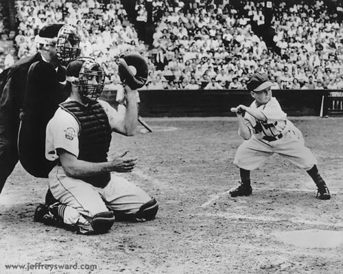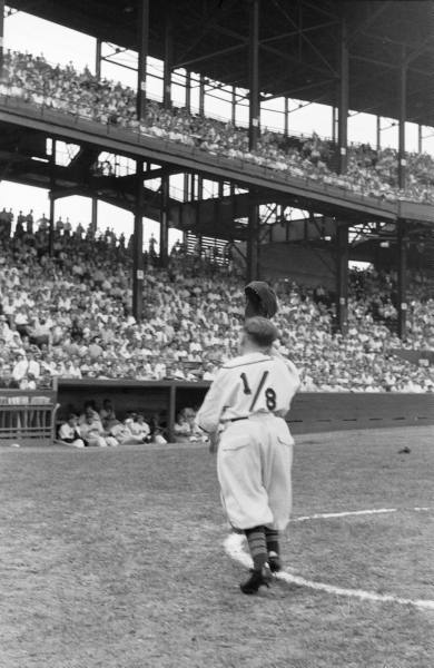 Eddie Gaedel gained immortality in the second game of a St. Louis Browns doubleheader on Sunday, August 19, 1951. Weighing 65 pounds, and standing 3 feet 7 inches tall, he became the shortest player in the history of the major leagues. He made a single plate appearance and was walked with four consecutive balls before being replaced by a pinch-runner at first base. His jersey, bearing the uniform number “⅛”, is displayed in the Baseball Hall of Fame.
