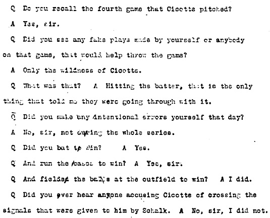 Shoeless Joe Jackson’s testimony, September 1920.