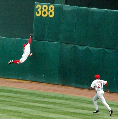 Darin Erstad making an incredible catch as a member of the California Angels.