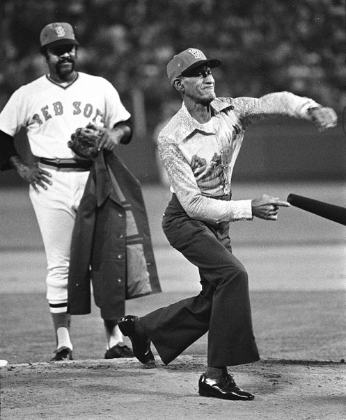 1975 World Series. Luis Tiant Jr of the Boston Red Sox watches his father Luis Tiant Sr throw out the ceremonial first pitch of the game. Fidel Castro himself allowed Tiant’s mother and father to leave Cuba to see their son play in the World Series which for the most part is unheard of. This is well documented in “The Lost Son Of Havana,” if you ever get a chance to watch this please do so. It is actually on Netflix Instant View, so you have no reason not to. By the way Tiant Sr, was a southpaw Negro League star who pitched from 1926 to 1947 and was known for his incredible screwball. Read up on him HERE.