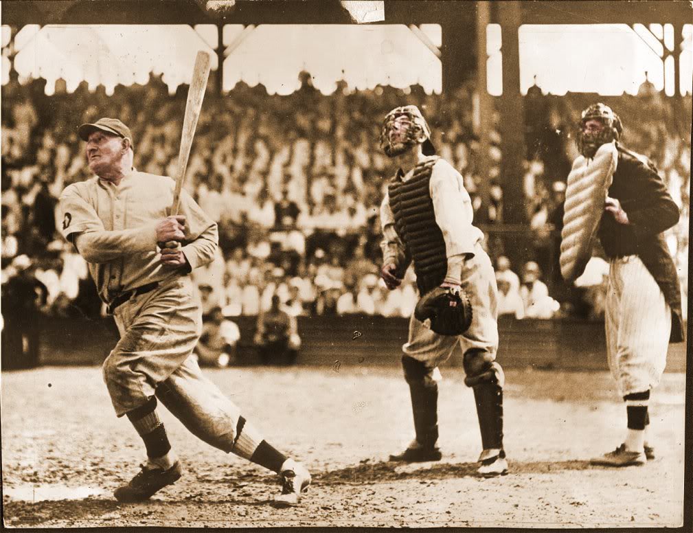 Honus Wagner at bat. Wow this photo is good, if I had a time machine one of things I would do is go back in time and check out Wagner play.
