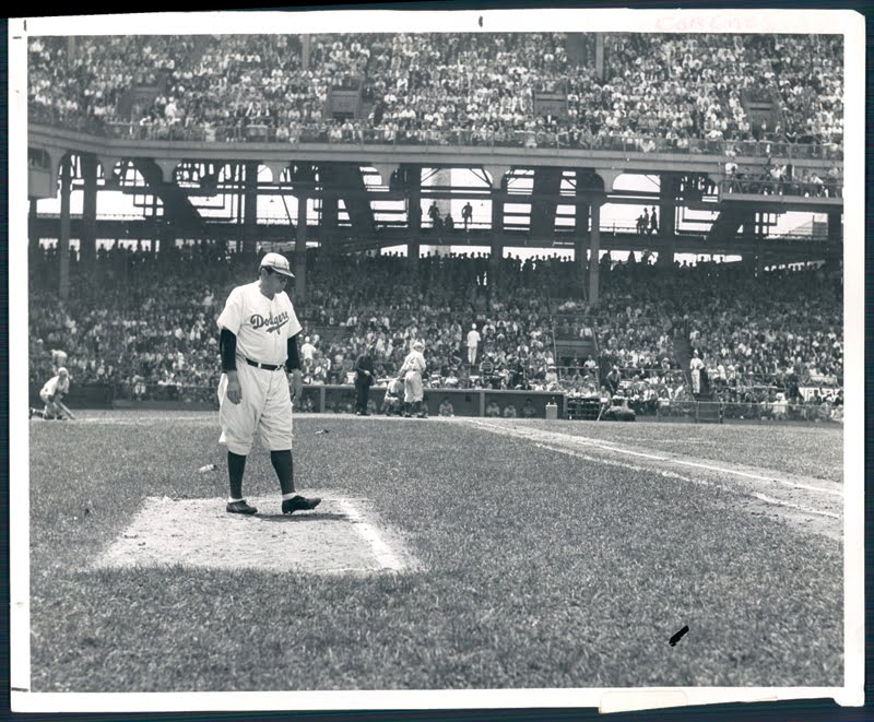 Babe Ruth in 1938 as First Base Coach of the Brooklyn Dodgers.