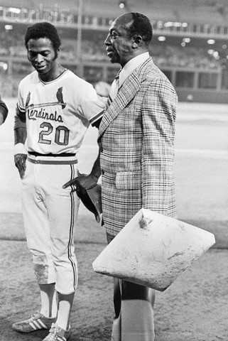 September 10th, 1974. Cool Papa Bell is on hand to witness and offer congratulations to Lou Brock after stealing his 105th base of the season. Brock finished the season with 118 stolen bases which is still a National League single season record while Rickey Henderson (obviously) holds the modern single season stolen base record with 130 which was set in 1982. HOWEVER before 1898 a stolen base was defined as and credited to a base runner who reached an extra base due to another player hitting a ball into play. With that said, Hugh Nicol is still credited in the record books for setting the stolen base record back in 1887 with 138 stolen bases as a member of the Cincinnati Red Stockings. Of course anyone with half a brain knows that Rickey is the actual king.
