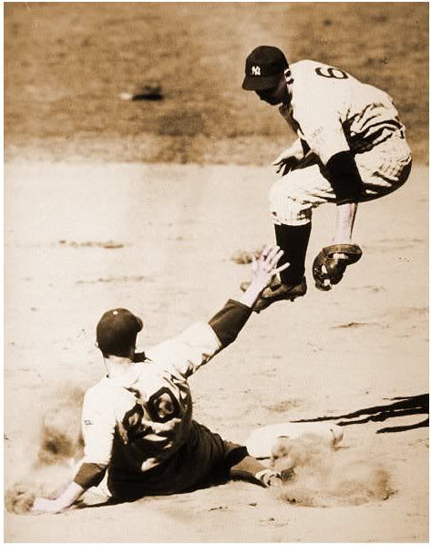 1943. A great action shot of Joe “Flash” Gordon of the New York Yankees in mid air at Second Base. I have mentioned before how much I admire Gordon and his Hall of Fame career. In my opinion, his name should be mentioned in the same sentences as many other Yankee greats. Read his wiki page HERE and beef up on what a stud this dude was on the Baseball field as a player and then as a Manager.