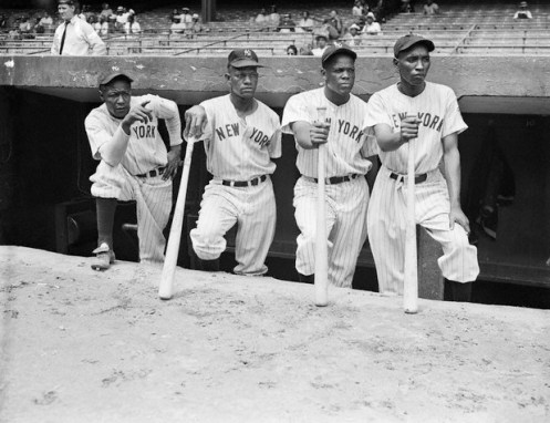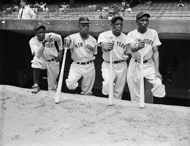 July 26th, 1942. Members of the New York Black Yankees. From Left to Right: Manager Tex Burnett, Harry Williams, Tom Parker and Dan Wilson. This is definitely one of my more favorite photos I have come across recently.