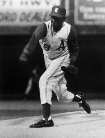Owner Charles O. Finley signed Paige, 59 at the time, for one game. On September 25, against the Boston Red Sox, Finley invited several Negro League veterans including Cool Papa Bell to be introduced before the game. Paige was in the bullpen, sitting on a rocking chair, being served coffee by a “nurse” between innings. He started the game by getting Jim Gosger out on a pop foul. The next man, Daltron Jones, reached first and went to second on an infield error, but was thrown out trying to reach third on a pitch in the dirt. Carl Yastrzemski doubled and Tony Conigliaro hit a fly ball to end the inning. The next six batters went down in order, including a strikeout of Bill Monbouquette. In the fourth inning, Paige took the mound, to be removed according to plan by Haywood Sullivan. He walked off to a boisterous ovation despite the small crowd of 9,000. The lights dimmed and, led by the PA announcer, the fans lit matches and cigarette lighters while singing “The Old Gray Mare”.