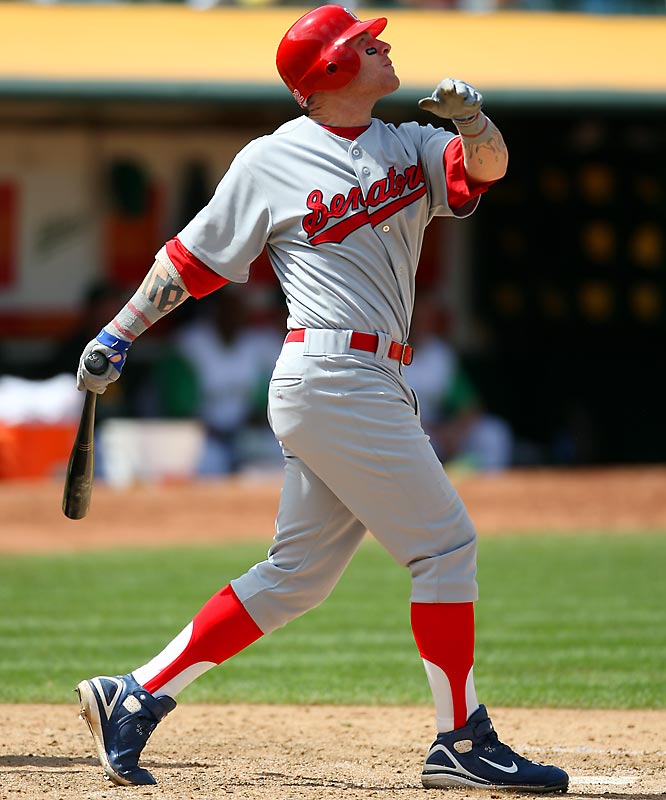 Speaking of awesome uniforms, how sweet is Josh Hamilton’s throwback Washington Senators uniform?? It looks so nice that I think the Rangers should consider tweaking their red alternate uniforms to this exact color scheme to pay homage to their organizational roots…minus the blue cleats.