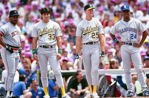 Members of the 1990 All-Star team: Cecil Fielder, Jose Canseco, Mark McGwire and Ken Griffey Junior. I don’t really know what to say about this photo so I guess I’ll throw the first thought of each player that comes to my head: