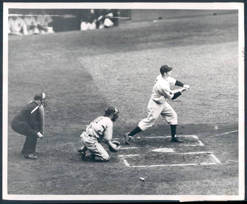 No big deal, it’s just a photo of Joe Dimaggio’s first Major League at-bat on May 3rd, 1936 in a game against the St. Louis Browns. He went 3 for 6 that day with a triple, 2 singles, a strikeout and 1 RBI. Not too shabby for a Major League debut I suppose.