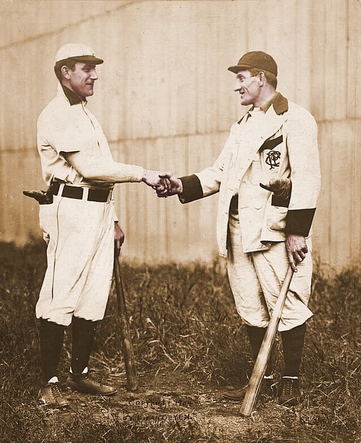 A great photo of Nap Lajoie of the Cleveland Naps and Honus Wagner of the Pittsbugh Pirates from 1904. Something that I did not know until recently is that Lajoie was the reason that the Naps were renamed the Indians after the 1914 season. After spending 13 years in Cleveland he was sold to the Philadelphia Athletics as his time in Cleveland had soured due to an on going feud with Manager Joe Birmingham in addition to deteriorating skills at the plate. The team wanted to separate themselves from Lajoie so they had local newspaper writers come up with up with the “Indians.” Kinda cool piece of trivia huh?
