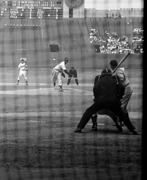July 21st, 1949. A great photo of Ole’ Satchel Paige of the Cleveland Indians pitching against the New York Yankees. Paige was a 43 year old in his second season in the Major Leagues at the time this photo was taken. He pitched 1.2 scoreless innings against the Bronx Bombers that day while allowing 2 hits, no walks and struck out 1.