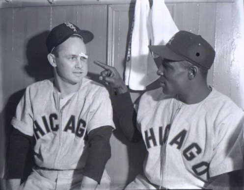 Minnie Minoso and Hall of Fame Second Basemen Nellie Fox of the Chicago White Sox were teammates from 1951 to 1957. I am not sure when this photo was taken but I think it captures old school Baseball perfectly in the sense that the dudes back then were way more tough than current players. In most cases now days if a player gets hit in the face like Fox above did, you probably can expect a short stay on the DL or at least miss a handful of games. My gut feeling tells me Fox didn’t miss more than 1 game.