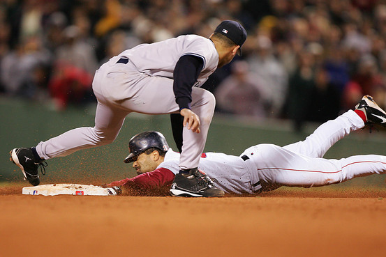 Game 4 of the 2004 ALCS placed The Yankees on the brink of eliminating the Red Sox once again and therefore continuing their dominance over the Boston organization. However in the 9th inning all that changed when Dave Roberts came in to pinch run and accomplished what is now considered to be one of the most famous stolen bases in Baseball history. EVERYONE knew what his job was and what he was going to attempt to do and he did not let down. I know this is a famous photo/moment in Baseball history and like I have mentioned more than once in the blog is that I try to steer away from extremely well documented moments in Baseball history however I will make an exception here. I LOVE stolen bases in high pressure situations and I LOVED Doc Roberts as a player. Forget a Homerun, lets see some stolen bases and fundamentally sound Baseball when it really counts.