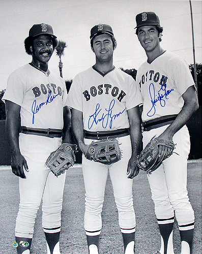 Jim Rice, Fred Lynn, and Dwight Evans. Imagine if this was your favorite team’s Outfield. Well from late in the season of 1974 to the end of 1980 the Fenway Outfield was patrolled by these studs. The fans at Fenway were definitely spoiled during those years. On a side note, does Dwight Evans’s eye brows freak anyone else or is just me?