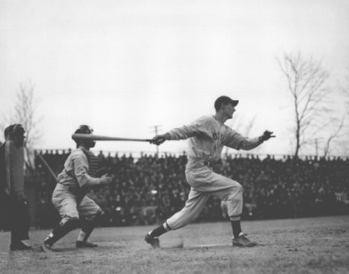April 14th, 1939 in Worcester, Massachusetts. Ted Williams hits a Homerun in his first at-bat as a member of the Boston Red Sox. This came during a exhibition game against a team called Holy Cross at Fitton Field. I assume Holy Cross was a semi-pro or school team?