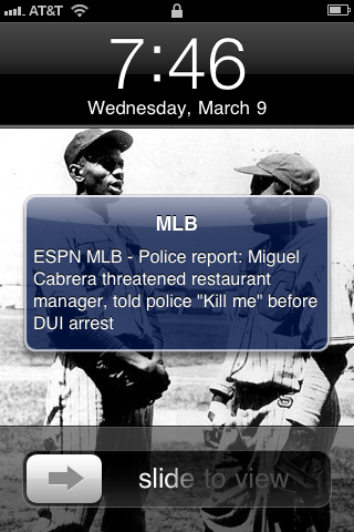 Well I just received this MLB news text message from ESPN and had to snap a screenshot. Is this really news worthy?? In any case, Miguel’s situation just went from bad to worse as the media is going to have a heyday with this “news worthy revelation” regarding his issues with alcohol.