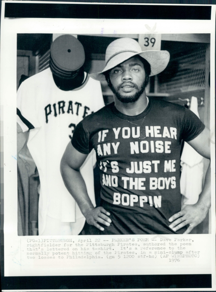 1976. Dave Parker wearing what could be very well the coolest shirt EVER. (Thanks to my buddy PL for sending this photo to me and literally making my week.)
