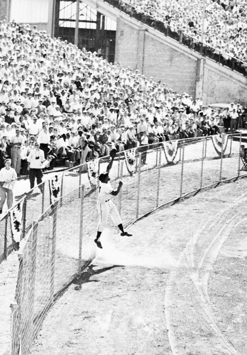 The 1955 All-Star game at County Stadium in Milwaukee showcased Willie by making this incredible catch and going 2 for 3 while scoring 2 runs.