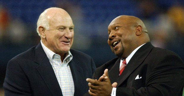 The logo actually wasn’t based on Harmon. There are definitely similarities, but the designer himself said that the logo is a composite of several players from that era. There’s a brief explanation here, which includes a link to a longer look from a few years ago.