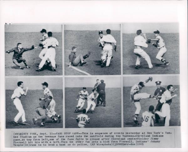 September 10th, 1961. Jimmy Piersall going buck wild on some out of line fans. If you look up Piersall and information regarding this incident, you will find a lot of autographed photos of him punching and kicking these idiots. I’m not big on autographs whatsoever but this is something I would be interested in getting signed if I ever met Piersall as it’s just too cool.