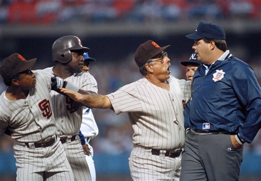 “That’s what you get when you have a AAA umpire filling in. Thirty-eight thousand people didn’t come here to see Jerry Layne; they came here to see Tony Gwynn.”