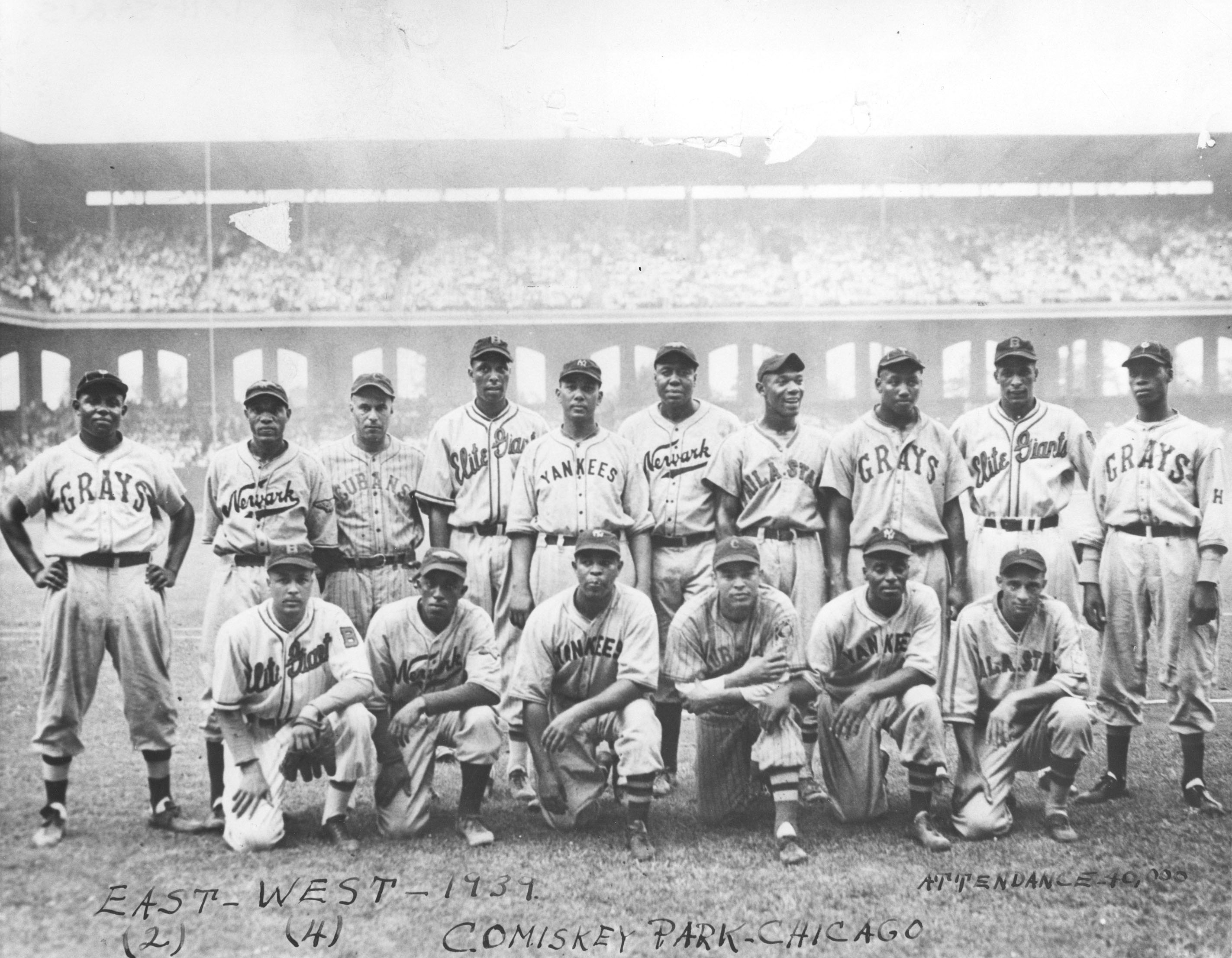 A great photo of the East Squad from the 1939 Negro League East-West Game at Comiskey Park in Chicago, Illinois. The first player on the top row is Hall of Famer Buck Leonard and Josh Gibson is fairly easy to spot (top row, 3rd from right). If you click on the photo, it’s a very large scan with lots of details which is very interesting. Also, if you want to read about the game, it’s outcome and the players who partook; click HERE for game 1 & HERE for game 2.