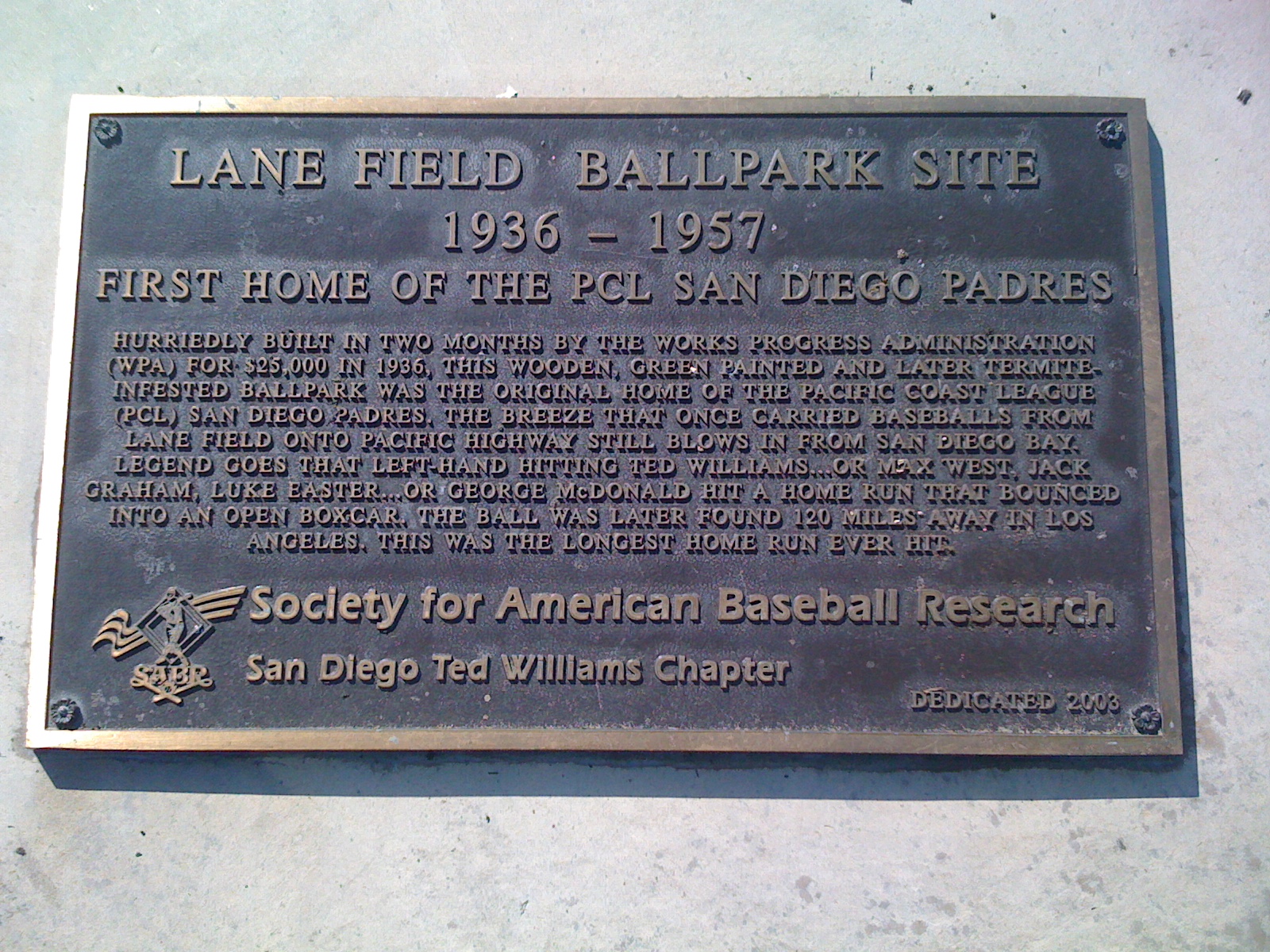 While I have heard the story about the Home Run landing in the train for ages; I have always thought it was Hall of Famer Bobby Doerr who did it during his 1936 season with the Padres. In any case, it’s still a great story regardless of who hit the ball (and whether or not it’s a true story). HERE is a photo of me next to the plaque.
