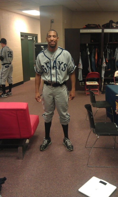 To finally get to the point, I follow Kroon on twitter (HERE) and he always posts interesting stuff. Back in May he posted this great photo of him in a Homestead Grays uniform as the Grizzlies and Memphis Redbirds played in a “Salute To The Negro Leagues” game. That’s how you wear a god damned Baseball uniform.