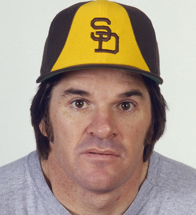 Something doesn’t seem right about this photo. Oh yeah, it’s Pete Rose wearing a San Diego Padres cap. I found this photo a year or two ago and the description said that Rose had to wear the cap for sizing during a portrait.
