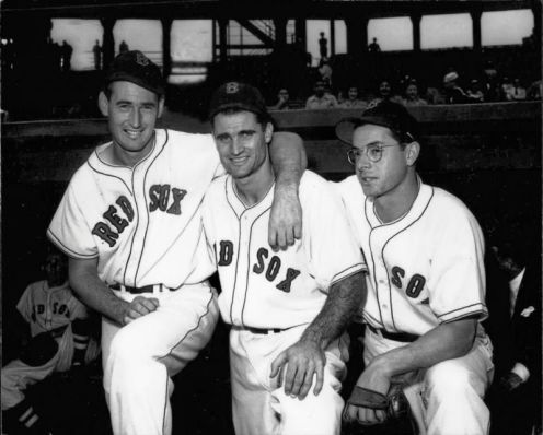 I love this photo as it features 3 of my favorite American League players from yesteryear: Ted Williams, Bobby Doerr, and Dom DiMaggio of the Boston Red Sox.