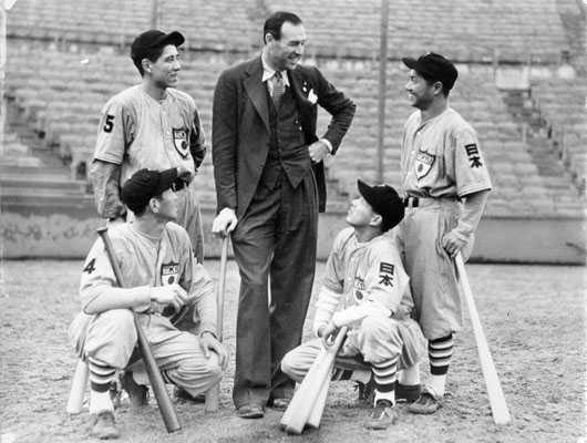 A great photo of Lefty O’Doul during one of his various trips to Japan as an ambassador of the game. In 2002 Lefty was posthumously inducted into the Japanese Baseball Hall of Fame. As far as I am concerned he should be in the National Baseball Hall of Fame also.