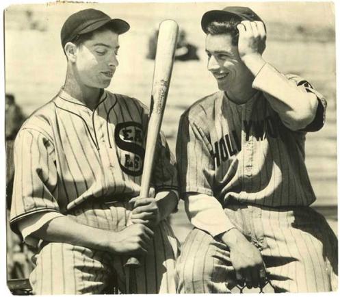 Joe DiMaggio & Vince DiMaggio during their PCL days as members of the San Francisco Seals and Hollywood Stars. This photo was taken in either 1934 or 1935, just shortly before the name “DiMaggio” was a household name throughout the nation.