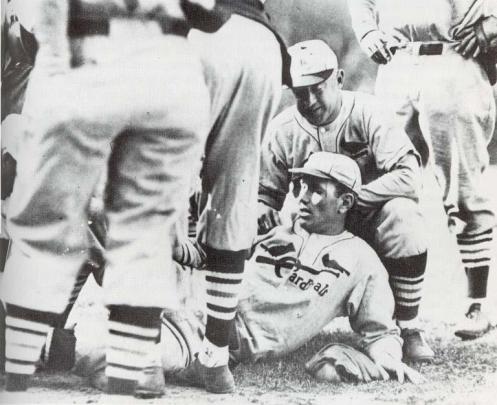 A great photo of Dizzy Dean after he famously knocked himself out while attempting to break up a double play during the 1934 World Series. The supposed newspaper headlines the following day read “X-ray of Dean’s head reveals nothing” and to those who were familiar with Dean and his antics were delighted and humored to say the least.