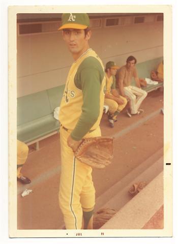 1971. A great photo of a 24 year old Rollie Fingers during his 3rd full season with the A’s. The fact that this was prior to his trademark mustache along with him wearing such an awesome A’s uniform both add to the pure awesomeness of this photo.