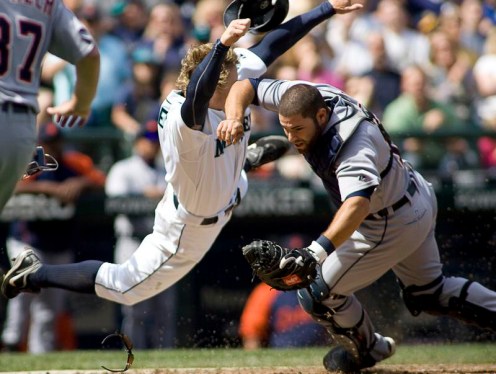 April 18th, 2010. You can’t look at this photo and tell me that Baseball doesn’t rule. What we have here is Eric Byrnes attempting to run over Catcher Alex Avila during a Mariners and Tigers game from last year. Byrnes was tagged out, but wow did he look cool doing so. I loved the way Byrnes played the game, hard nosed and with a lot of energy. It’s really too bad his career was derailed due to injuries.