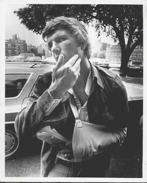 1976. Bill Lee after the now infamous brawl between the Yankees and Red Sox which left his shoulder seriously injured after Graig Nettles got a hold of him.