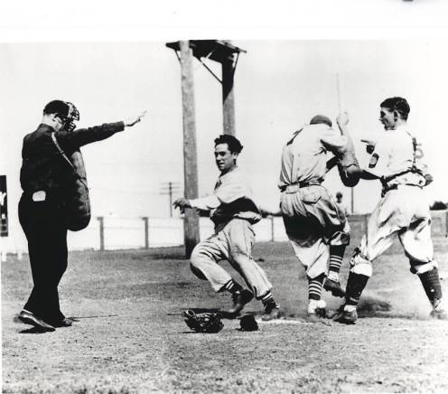 Holy Moly, finding this photo is like finding a treasure chest in a sunken ship! What we have here is a photo of a VERY young Gene Mauch and Yogi Berra while playing American Legion Baseball. While it’s very obvious who Yogi is in the photo, I’m not quite sure what player is Mauch.