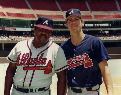 Willie Stargell and Dale Murphy. I found this photo and thought I was seeing things as I have NO recollection of Stargell being a coach for the Braves. I looked into it and it turns out he was a Braves coach for a number of years and was a big influence on a young Chipper Jones. While that’s cool and interesting, I must say that I feel uneasy seeing Stargell in any uniform other than the Pirates.