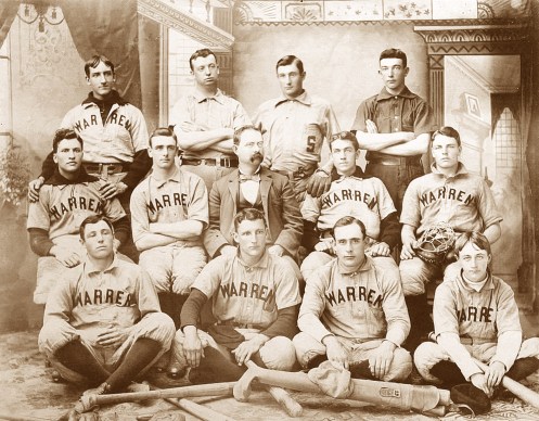 The 1895 Warren Pennsylvania Baseball team of the old Iron And Oil League. This team featured a 21 year old Honus Wagner (back row, 2nd from right) and his older brother Albert “Butts” Wagner (front row, 2nd from right). Prior to finding this photo I had no idea that Honus Wagner had a brother in Baseball.