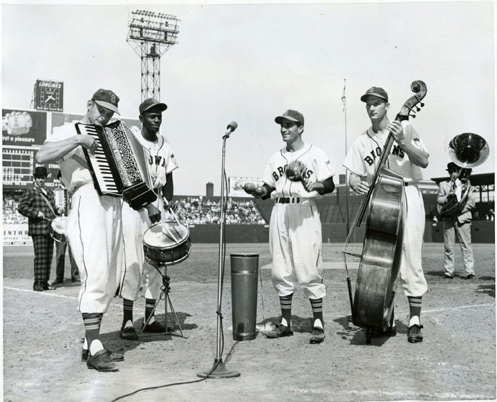 4. for the 1951 Browns music picture- “Satchel Paige and other members of the St. Louis Browns form a musical quartet on the field between games of a double header. Browns owner Bill Veeck was responding to a joke that ‘as ballplayers, the Browns make better musicians.”
