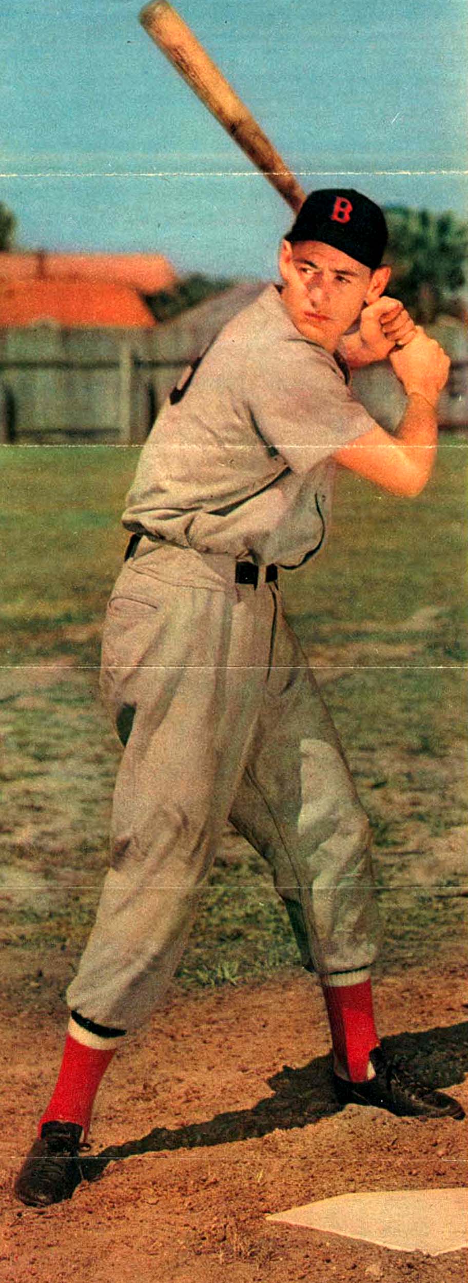 A color photo of a Ted Williams taken from what I assume is during Spring Training from his early years with the Boston Red Sox. I wish I knew what year this was taken and where the photo came from.