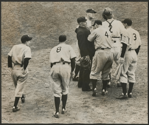 Gehrig argues with an umpire during the 1938 World Series against the Chicago Cubs. This photo takes me off guard as Gehrig was known as being very respectful to most and having a even-keeled personality. I would love to know the story behind this incident. To view some video of Game 1 of the series, click HERE (I warn you to put the sound on mute first).