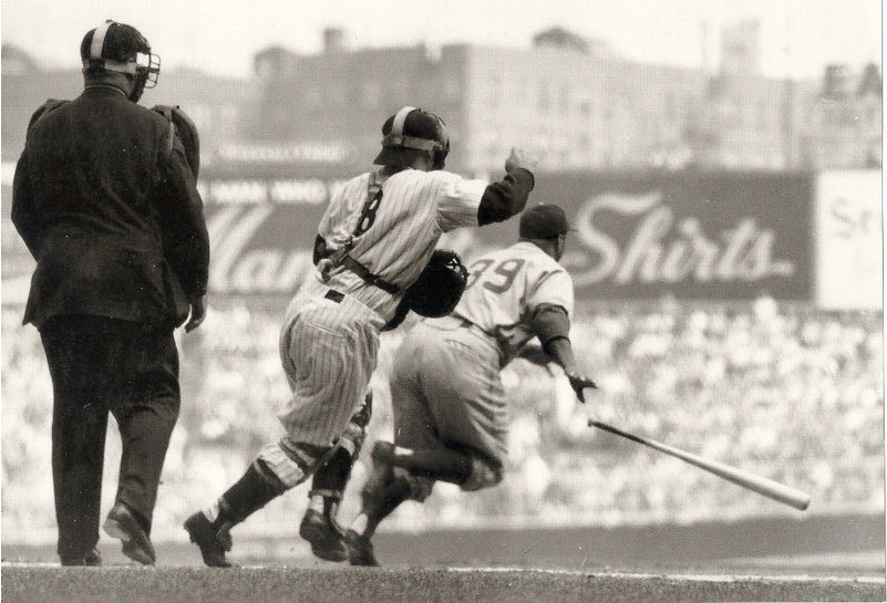 I recently came across this photo from one of the five World Series’ that these legends engaged in during their careers and totally fell in love with it. It doesn’t get much better than Yogi Berra trailing his National League catching counterpart in Roy Campanella out of the batter’s box.