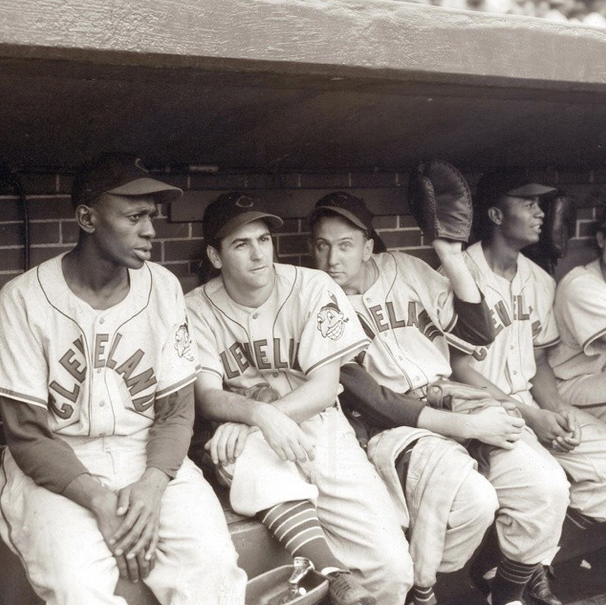 Satchel Paige, Lou Boudreau, Steve Gromek and Larry Doby sit in the dugout during an Indians road game in the late 40’s. This photo grabbed me when I came across it due to the a wide range of personalities and diverse back stories of the players captured in it. In my opinion, the Bill Veeck owned Indians teams of the 1940’s are some of the more interesting teams in MLB history.