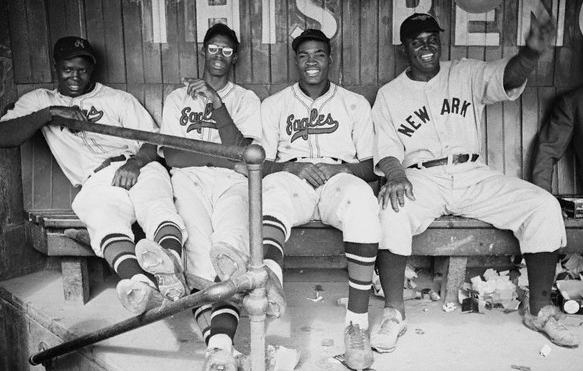 (L-R) Leniel Hooker, Max Manning, Jim Brown, and Manager Raleigh ‘Biz’ Mackey in an awesome Negro League photo taken in June of 1939 during a game against the New York Black Yankees.