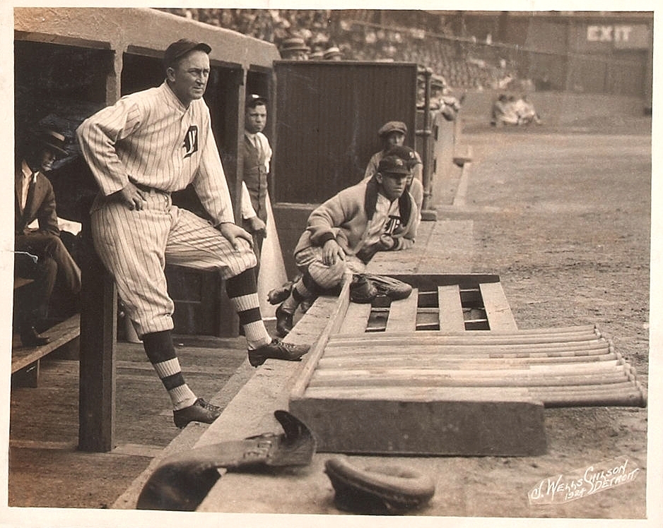 1924. Ty Cobb manages from the dugout during his 4th season as a Player/Manager of the Detroit Tigers. Call me crazy but something tells me that Cobb may have been a difficult Manager to play for.
